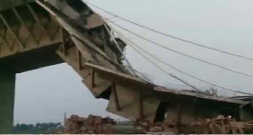 A section of road bridge connecting Sultanganj in Bhagalpur district to Khagaria gave way on April 29. The officials of Bihar government submitted a report with state and union road transport ministry citing "strong wind and fog" as causes that led to it.