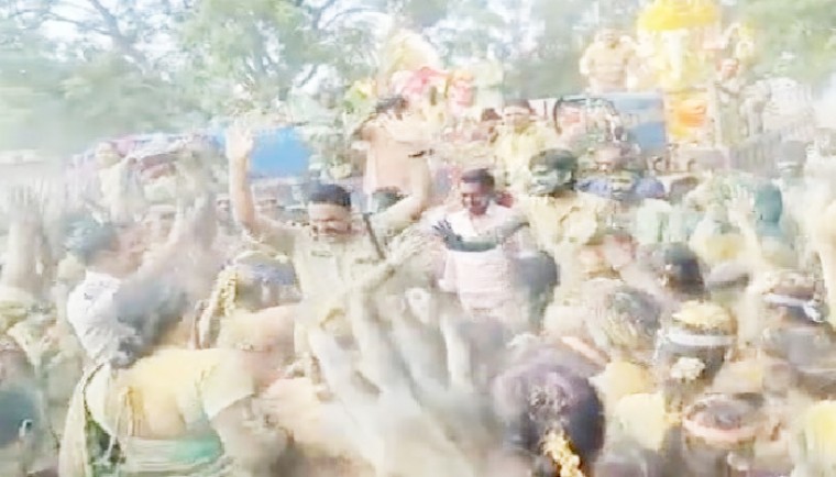 ఇక ఊరేగింపులో డప్పుల మోతకు పోలీసులు సైతం కాలు కదిపారు. ఎస్పీ ఫక్కీరప్ప గ్రామ ప్రజలతో కలిసి ఉత్సాహంగా చిందేశారు. ఎస్పీని చూసి ఇతర పోలీసులు కూడా ఊరేగింపులో పాల్గొని స్టెప్పులేశారు. ఈ సందర్భంగా, ఫ్యాక్షన్ ఛాయలున్న ఈ గ్రామంలోని రెండు వర్గాలకు చెందినవారిని ఒక్కటిగా చేసి వారితోనూ పోలీసులు చిందులేయించారు. ఎస్పీ అంతటివాడు తమతో కలిసి ఉత్సవాల్లో పాల్గొనడం బోడాయిపల్లి గ్రామస్థులను అమితానందానికి గురిచేసింది.