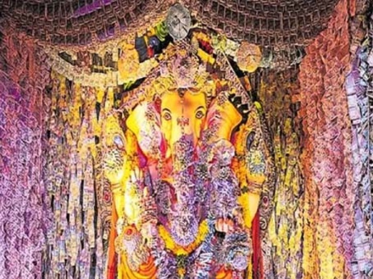 ఎన్టీఆర్ జిల్లా నందిగామలో ఏర్పాటు చేసిన విఘ్నేశ్వరుడు కోటి రూపాయల కరెన్సీ నోట్లతో భక్తులకు దర్శనమిచ్చారు. వాసవి మార్కెట్ గణేష్ ఉత్సవ కమిటీ ఆధ్వర్యంలో వినాయక చవితికి భారీ విగ్రహాన్ని ఏర్పాటు చేశారు. రోజుకొక అలంకరణతో ఘనంగా పూజలు నిర్వహిస్తున్నారు. ఈ క్రమంలో గణనాథుడితో పాటు మండపాన్ని సైతం కరెన్సీ నోట్లతో అలంకరించారు. స్వామి వారిని దర్శించుకునేందుకు భక్తులు పోటెత్తారు.