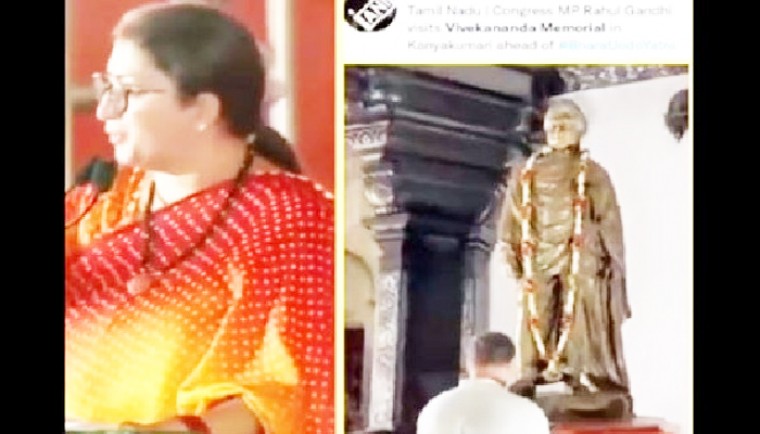 కన్యాకుమారిలో రాహుల్గాంధీ స్వామి వివేకానంద విగ్రహాన్ని సందర్శించి నివాళులు అర్పిస్తున్న వీడియోను స్మృతి చేసిన విమర్శల వీడియోకు జత చేసి గట్టి కౌంటర్ ఇచ్చింది. మరోవైపు, స్మృతి వ్యాఖ్యలపై స్పందించిన కాంగ్రెస్ అధికార ప్రతినిధి, ఎంపీ జైరాం రమేశ్ మాట్లాడుతూ.. అబద్ధాలను ప్రచారం చేయడంలో బీజేపీ ముందు వరుసలో ఉంటుందని ఎద్దేవా చేశారు. స్వామి వివేకానందకు రాహుల్ నివాళులు అర్పించడం మరింత స్పష్టంగా కనిపించేందుకు అవసరమైతే కొత్త కళ్లద్దాలు పంపిస్తామని వ్యంగ్యాస్త్రాలు సంధించారు.