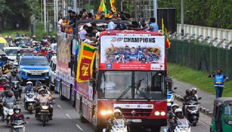 శ్రీలంక క్రికెట్ జట్టుకు సొంత దేశమైన శ్రీలంకలో అపూర్వ ఘన స్వాగతం లభించింది. ఆసియా కప్ లో టీమిండియా, పాకిస్థాన్ వంటి మేటి జట్లను ఓడించి టైటిల్ నెగ్గిన శ్రీలంక జట్టుకు స్వదేశంలో ఘనస్వాగతం లభించింది. యూఏఈ నుంచి కొలంబో చేరుకున్న ఆటగాళ్లను విమానాశ్రయం నుంచి ఓపెన్ టాప్ బస్సులో ఊరేగింపుగా తీసుకెళ్లారు. వేలాది మంది అభిమానులు తరలిరాగా లంక ఆటగాళ్లు ఆసియా కప్ ట్రోఫీని ప్రదర్శిస్తూ, తమ మద్దతుదారులకు అభివాదం చేస్తూ ముందుకు సాగారు. ఊరేగింపు పొడవునా అభిమానులు నినాదాలు చేయగా, టోర్నీ ఆసాంతం తమకు మద్దతుగా నిలిచిన అభిమానులకు లంక ఆటగాళ్లు కృతజ్ఞతలు తెలిపారు.