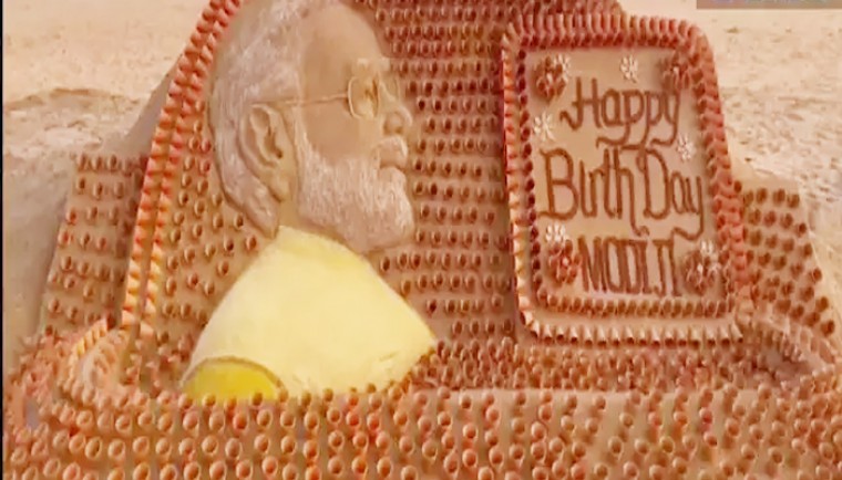 ఆ సైకత శిల్పంలో హ్యాపీ బర్త్డే మోదీ అని రాసి.. శుభాకాంక్షలు తెలియజేశారు. ఐదు ఫీట్ల పొడవున్న ఈ శిల్పం కోసం సుదర్శన్ పట్నాయక్ ఐదు టన్నుల ఇసుకను వినియోగించారు. "టీ అమ్మే వ్యక్తి నుంచి దేశ ప్రధాని అయ్యే వరకు నరేంద్ర మోదీ ప్రయాణాన్ని చూపించడానికి మేము ఈ మట్టి టీ గ్లాసులను ఉపయోగించాం. నేను నా కళ ద్వారా ప్రధానమంత్రికి నా శుభాకాంక్షలు తెలియజేస్తున్నాను." అని సుదర్శన్ పట్నాయక్ అన్నారు.