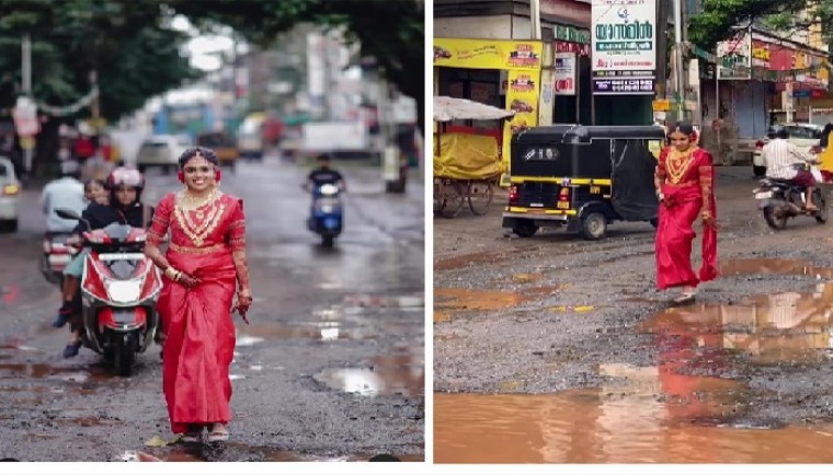 కేరళలో నిండా గుంతలు, బురదతో నిండిన ఓ రోడ్డులో పెళ్లి కూతురుతో ఫొటో షూట్ చేశారు. ఎరుపు రంగు చీర కట్టుకుని, ఒంటి నిండా నగలు వేసుకుని.. అందంగా తయారైన పెళ్లి కూతురు ఆ బురద, గుంతల మధ్య నుంచి నడుచుకుంటూ వస్తుండగా ఫొటోలు, వీడియోలు తీశారు. ఆ సమయంలో పలు వాహనాలు కూడా ఆ దారిలో ప్రయాణిస్తున్నాయి. గుంతల నుంచి తప్పించుకుంటూ, పడిపోకుండా ఉండేలా మెల్లగా వాహనాలు నడుపుకొంటూ వెళ్లడం కనిపిస్తోంది. తమ ప్రాంతంలో రోడ్లు సరిగా లేని పరిస్థితి, చిన్న వర్షానికే అంతా బురదగా మారుతున్న దుస్థితిని చూపించడం కోసం తాము ఈ పనిచేసినట్టు పెళ్లి కూతురు, వెడ్డింగ్ ఫొటోగ్రాఫర్లు చెబుతున్నారు. ఇన్ స్టాగ్రామ్ లో, యూట్యూబ్ లో దీనికి సంబంధించిన వీడియో వైరల్ గా మారింది. ఇన్ స్టా గ్రామ్ లో ఏకంగా 43 లక్షల వ్యూస్ రాగా.. మూడు లక్షలకు పైగా లైకులు వచ్చాయి. ‘అది రోడ్డులా లేదు.. స్విమ్మింగ్ పూల్స్ తో కూడిన ఏరియాలా ఉంది..’ అని కొందరు కామెంట్ చేస్తుంటే.. ‘నీటి గుంతలు బాగున్నాయి. హాయిగా కొన్ని చేపలు తెచ్చి పెంచుకోవచ్చు..’ అంటున్నారు.