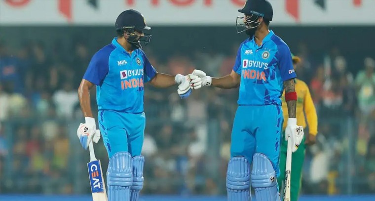 టీమిండియా, దక్షిణాఫ్రికా జట్ల మధ్య రెండో టీ20 మ్యాచ్ జరుగుతుంది. ఈ మ్యాచ్ లో టాస్ గెలిచి దక్షిణాఫ్రికా బౌలింగ్ ఎంచుకొంది. మొదటి బ్యాటింగ్ దిగిన టీమిండియా భారీ స్కోర్ చేసింది. 20 ఓవర్లలో 3 వికెట్ల నష్టానికి 237 పరుగులు చేసింది. ఈ మ్యాచ్ లో టీమిండియా బ్యాట్సమెన్ లో సూర్య 61 పరుగులు, రాహుల్ 57 పరుగులు, రోహిత్ 43 పరుగులు, కోహ్లీ 49 పరుగులు, దినేష్ కార్తీక్ 17 పరుగులు చేసారు.