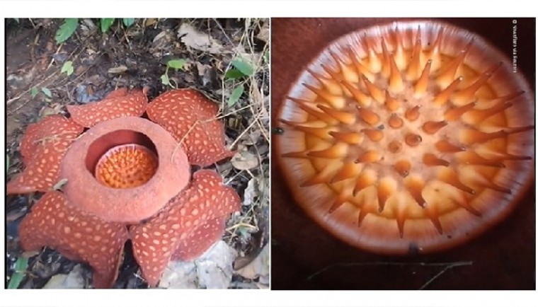 మనకు కొన్ని విహార యాత్రలు జీవితంలో ఎనలేని గుర్తుగా నిలిచిపోతాయి. తాజాగా ఓ ఇండోనేషియాకు చెందిన వ్యక్తికి విహార యాత్ర ఓ మధురానుభూతిని మిగిల్చింది. అది ఇండోనేషియాలోని అటవీ ప్రాంతం.. ఓ యువకుడు సరదాగా ట్రెక్కింగ్ కు వెళ్లాడు.. కొండలు, గుట్టల మధ్య అడవిలో వెళుతున్న అతడికి నేలపై ముదురు ఎరుపు రంగులో పెద్ద ఆకారం కనబడింది. దగ్గరికి వెళ్లి చూస్తే అదో పుష్పం.. అది మామూలు పుష్పం కాదు. ప్రపంచంలోనే అతిపెద్ద ఏక పుష్పమైన రఫ్లీషియా అర్నోల్డి. ఆ పువ్వును చూసి ఆశ్చర్యపోయిన యువకుడు దానిని వీడియో తీసి.. సోషల్ మీడియాలో పోస్ట్ చేయడంతో వైరల్ గా మారింది. మొదట ఏదో అలంకరణ కోసం వాడే ప్లాస్టిక్ పువ్వు అనుకున్నానని.. కానీ దగ్గరికి వెళ్లి చూస్తే అది అతిపెద్ద పుష్పమని గుర్తించానని సదరు యువకుడు వీడియోలో పేర్కొన్నాడు.