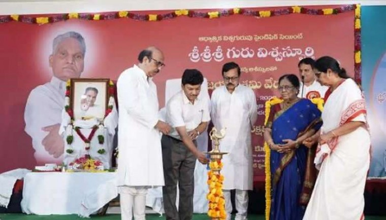 సాహితీవేత్త డాక్టర్ ముక్తేవి భారతి మాట్లాడుతూ.. ‘‘గురువుగారు పుస్తకాలు చదివేది ఎంత మంది.. ఎంత మందికి అర్ధమవుతాయని అన్నారు.. చేరినా కూడా చదివి వెంటనే అర్ధం చేసుకోకపోవచ్చు.. గురువుగారి ఉపదేశాలు శిష్యుల ద్వారా ప్రచారమవుతాయి.. గురువు ఎప్పుడూ విద్యార్థి నుంచి ఆశించవద్దు.. అనుగ్రహం చూపించాలని విశ్వగురువు చెబుతారు.. జ్ఞానాన్ని విద్యార్థులకు పంచాలి.. మనకు కావాల్సినవి సమకూర్చుకోవడం ఆశ కాదని.. అవసరమని, ఆశతోనే జీవించాలని, దురాశ పనికిరాదని గురువుగారు చెబుతారు.. ఎప్పుడు ఏదైనా జరగొచ్చు.. మానవజాతి ఉమ్మడి భావం మానవత్వం.. అందరం ఒకటే అనే భావన ఉన్నప్పుడే అది సాధ్యం.. మానవత్వం లేకపోవడంతో విపరీతమైన స్వార్థం పెరిగిపోతుంది..
