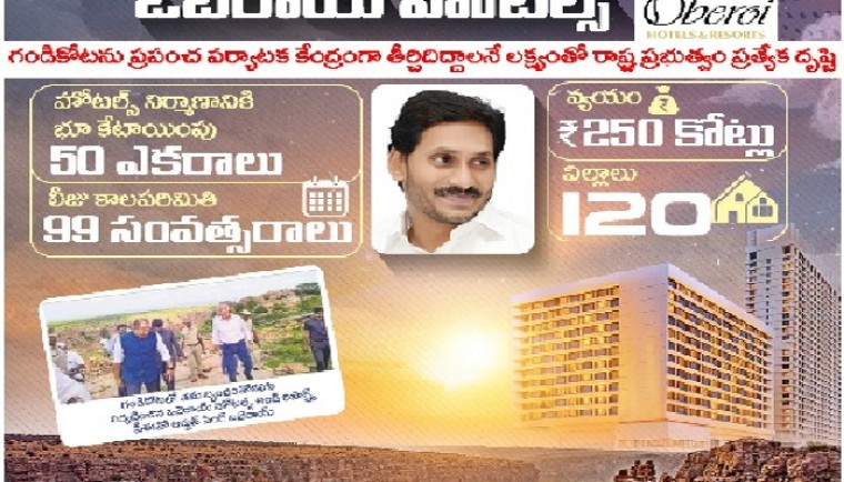 కడపజిల్లా గండికోట ప్రాంతానికి కొత్త హంగు రానున్నది. ఏపీ సీఎం వైఎస్ జగన్ మోహన్ రెడ్డి సొంత జిల్లా కడపలోని ప్రసిద్ది చెందిన పర్యాటక కేంద్రం గండికోటకు మరింతగా పర్యాటక ప్రాధాన్యం పెరగనుంది. ఈ పర్యాటక కేంద్రంలో ఆతిథ్య రంగంలో దేశంలోనే పేరెన్నిగన్న ఒబెరాయ్ హెటల్స్ అండ్ రిసార్ట్స్ లిమిటెడ్ ఏకంగా రూ.250 కోట్లను పెట్టుబడిగా పెట్టనుంది. ఈ నిధులతో గండికోటలో 120 విల్లాలను ఆ సంస్థ నిర్మించనుంది. ఇందుకోసం ఆ సంస్థకు అవసరమైన 50 ఎకరాలను ఏపీ ప్రభుత్వం 99 ఏళ్లపాటు లీజుకు ఇచ్చింది. ఈ మేరకు లీజుకు సంబంధించి రాష్ట్ర ప్రభుత్వం గురువారం అధికారికంగా ఉత్తర్వులు జారీ చేసింది.
