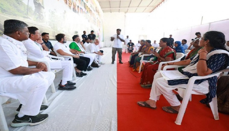 దళిత సామాజిక వర్గానికి చెందిన పలువురు దేవదాసీలు యాత్రా శిబిరానికి రాగా... వారితో రాహుల్ గాంధీ భేటీ అయ్యారు. ఈ సందర్భంగా తమ సమస్యలపై వారు ఇచ్చిన వినతి పత్రాన్ని రాహుల్ పరిశీలించారు. తమ జీవన ప్రమాణాలను మెరుగుపరచుకునే దిశగా జాతీయ ఉపాధి హామీ పథకాన్నివినియోగించుకుంటున్నామని, ఈ క్రమంలో ఓ జట్టుగా చేరి ఆర్థికంగా కొంతమేర వృద్ధి సాధించామని చెప్పారు. వారి కృషి, పట్టుదలను మెచ్చుకున్న రాహుల్ గాంధీ పార్టీ తరఫున వారి సమస్యల పరిష్కారంపై దృష్టి సారిస్తామని చెప్పారు.
