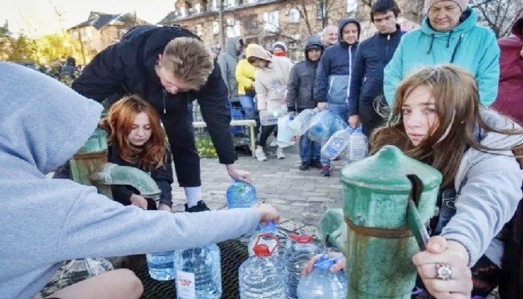 ఇటీవల రష్యా క్షిపణులతో విరుచుకుపడడంతో కీవ్, ఇతర నగరాలలో విద్యుత్ సరఫరాకు అంతరాయం కలిగింది. అధికార యంత్రాంగం దీనిని పునరుద్ధరించే ఏర్పాట్లలో ఉన్న సమయంలోనే సోమవారం మరోమారు రష్యా దాడులు చేసింది. సుమారు 50 క్షిపణులతో కీవ్, ఖార్కీవ్ లవీవ్, ఖేర్సన్, ఒడెసా తదితర నగరాలపై దాడి చేసింది. ఆయా నగరాల్లోని మౌలిక సదుపాయాల వ్యవస్థలను లక్ష్యం చేసుకుని దాడులకు పాల్పడిందని ఉక్రెయిన్ ఆరోపించింది. దీంతో చాలా నగరాల్లో ప్రజలకు తాగునీటి సరఫరా నిలిచిపోయింది. ప్రత్యామ్నాయ మార్గాల ద్వారా నీటి సరఫరా చేపట్టేందుకు ఏర్పాట్లు చేస్తున్నట్లు అధికారుల చెప్పారు. ఈలోపు దగ్గర్లోని తాగునీటి కేంద్రాలకు జనం క్యూ కట్టారు.