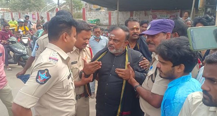 అనకాపల్లి పట్టణంలో గురువారం మాజీ ఎమ్మెల్యే పేల వెంకట గోవింద సత్యనారాయణను పోలీసులు అరెస్టు చేశారు. మాజీ మంత్రి చింతకాయల అయ్యన్నపాత్రుని సిఐడి అరెస్టు చేయడానికి నిరసనగా పేలా నగరంలో నిరసన తెలియజేశారు. టిడిపి ఆధ్వర్యంలో నిరసనలు తెలియజేస్తుండగా పీలాను పోలీసులు అరెస్టు చేసి స్టేషన్ కి తరలించాడు. మాజీ మంత్రి అయ్యన్నపాయే కక్ష సాధింపు చర్య జరుగుతుందని ఆయన నిరసన వ్యక్తం చేశారు. అయ్యన్నను విడుదల చేయాలని పీలా నినాదాలు చేశారు.