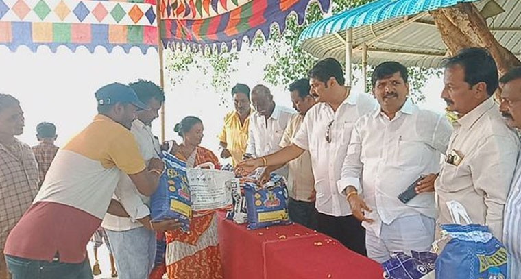 ఎన్టీఆర్ జిల్లా, కృష్ణానది వరదల కారణంగా గత నాలుగు నెలలుగా చేపల వేట నిలిచిపోవడంతో ఆర్థిక ఇబ్బందులకు గురవుతున్న గ్రామంలోని 167 మత్స్యకా రుల కుటుంబాలకు ఆదివారం ఇబ్రహీంపట్నంలో ని గణేష్ ట్రాన్స్పోర్ట్ అధినేత వేములపల్లి విజయ రాం ప్రసాద్ బియ్యం కందిపప్పు నూనె చింతపండు వంటి నిత్యవసర వస్తువులను పంపిణీ చేశారు, ఈ సందర్భంగా ఆయన మాట్లాడుతూ ఇటీవల రాష్ట్ర మాజీ మంత్రి దేవినేని ఉమామహేశ్వరరావు గ్రామంలో పర్యటించిన సమయంలో మత్స్య కార్మికులు తమ ఇబ్బందులను ఆయన దృష్టికి తీసుకువచ్చారు దీనితో ఆయన స్పందించి తన వంతుగా గ్రామంలోని మత్స్య కార్మికులకు బియ్యం, నిత్యవసర వస్తువులను అందజేసామని తెలిపారు. ఇబ్రహీంపట్నం మండల టిడిపి అధ్యక్షులు రామినేని రాజశేఖర్ మాట్లాడుతూ గ్రామానికి చెందిన మత్స్య కార్మికుల సమస్యలను దృష్టిలో ఉంచుకొని రాంప్రసాద్ సహకారంతో ఈ కార్యక్రమం చేపట్టినట్లు తెలియజేశారు. పేద ప్రజలను ఆదుకోవడంలో తన సహకారం అందించిన రాంప్రసాద్ కు ఆయన కృతజ్ఞతలు తెలియజేశారు. భవిష్యత్తులోను మత్స్యకారుల కు తమ పార్టీ ఎప్పుడూ అండగా ఉంటుందని తెలిపారు. ఈ కార్యక్రమంలో టిడిపి నాయకులు తాడికొండ రామకృష్ణ , సుంకర విష్ణు కుమార్, రంగు బుచ్చిబాబు, వెలగపూడి రామకృష్ణ, జాస్తి శ్రీనివాసరావు, మత్స్య కార్మికుల నాయకులు అబ్రహం, నాగేశ్వరరావు తదితరులు పాల్గొన్నారు.