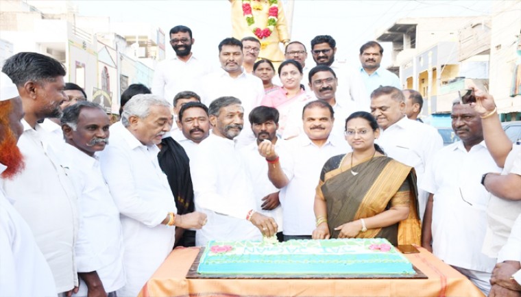 వై.ఎస్.జగన్మోహన్ రెడ్డి చేపట్టిన పాదయాత్రకు ఐదు వసంతాలు పూర్తవ్వడంతో రాష్ట్రవ్యాప్తంగా వైసీపీ శ్రేణులు సంబరాలు చేసుకొంటున్నాయి. ఇందులో భాగంగా పాణ్యం నియోజకవర్గ పరిధిలోని, శరీన్ నగర్ లో "దివంగత మహానేత డాక్టర్ వైఎస్ రాజశేఖరరెడ్డి" విగ్రహానికి పూలమాలలు వేసి ఘనంగా నివాళులర్పించారు.అనంతరం కేక్ కటింగ్ చేసి నాయకులకు,కార్యకర్తలకు తినిపించి శుభాకాంక్షలు తెలిపారు. ఈ సందర్భంగా పాణ్యం ఎమ్యెల్యే కాటసాని రాంభూపాల్ రెడ్డి మాట్లాడుతూ ఆంధ్రప్రదేశ్ రాష్ట్ర ముఖ్యమంత్రి వర్యులు వైఎస్ జగన్ మోహన్ రెడ్డి ప్రజాసంకల్ప యాత్ర ప్రారంభించి నేటికీ ఐదు సంవత్సరాలు పూర్తి చేసుకున్న సందర్భంగా నియోజకవర్గ పరిధిలోని పలు చోట్ల మహానేత డాక్టర్ వైఎస్ రాజశేఖరరెడ్డి విగ్రహాలకు పూలమాలలు వేసి నివాళులర్పించామని,పలు సేవా కార్యక్రమాలు నిర్వహించామని,ప్రజాసంకల్ప యాత్రలో ప్రజలను దగ్గర నుంచి చూసిన జగనన్న ప్రజలందరికీ ఏ ఏ సంక్షేమ పథకాలు కావాలో వాటిని మేనిఫెస్టోలో ప్రకటించి,వాటిలో నేటికీ 95 శాతం నెరవేర్చిన ఘన చరిత్ర ఆంధ్రప్రదేశ్ ముఖ్యమంత్రి వైఎస్ జగన్మోహన్ రెడ్డి గారిదని, ప్రజా ప్రతినిధులందరికీ నియోజకవర్గ పరిధిలో ప్రతి ఇంటికి పంపిస్తూ ప్రజలకు సంక్షేమ పథకాలు అందుతున్నాయా లేదా అని తెలుసుకోవాలని, సంక్షేమ పథకాలు అందని వారు ఎవరైన ఉంటే వారికి కూడా అందించాలని సూచించారని, కులం,మతం,ప్రాంతం తేడా లేకుండా ప్రతీ ఒక్కరికి సంక్షేమ పథకాలు అందేలా చేయాలన్నది ముఖ్యమంత్రి జగన్మోహన్ రెడ్డి గారి లక్ష్యమని, పేద ప్రజల పక్షపాతి ముఖ్యమంత్రి వైఎస్ జగన్ మోహన్ రెడ్డికి నా హృదయ పూర్వక కృతజ్ఞతలు తెలియజేస్తున్నానని తెలిపారు.పిలుపు నిచ్చిన వెంటనే ఈ కార్యక్రమాన్ని ఏర్పాటు చేసి హాజరైన ప్రతీ ఒక్కరికీ పేరు,పేరున కృతజ్ఞతలు తెలిపారు.