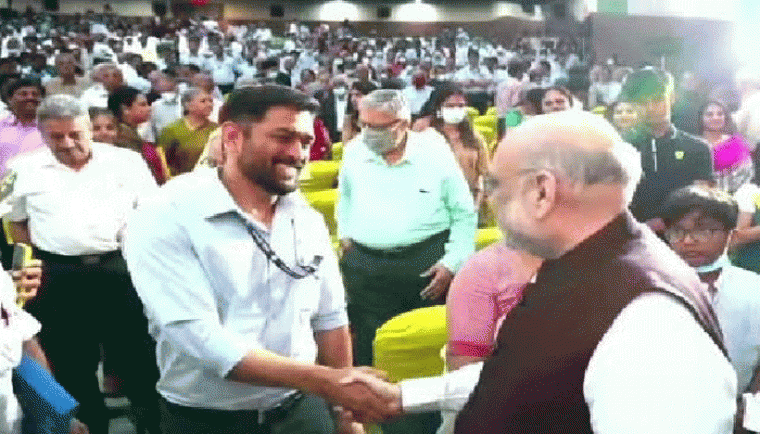 గుజరాత్ అసెంబ్లీ ఎన్నికల్లో టీమిండియా ఆల్ రౌండర్ రవీంద్ర జడేజా భార్యకి బీజేపీ టికెట్ దక్కిన తరుణంలో... శనివారం సోషల్ మీడియాలో కనిపించిన ఓ ఫొటో తెగ వైరల్ గా మారిపోయింది. ఈ ఫొటోలో టీమిండియా మాజీ సారథి, కెప్టెన్ కూల్ మహేంద్ర సింగ్ ధోనీ... కేంద్ర హోం శాఖ మంత్రి అమిత్ షాతో కరచాలనం చేస్తున్నారు. శనివారం తమిళనాడు పర్యటనకు వెళ్లిన అమిత్ షా... ఇండియా సిమెంట్స్ వజ్రోత్సవ వేడుకల్లో పాలుపంచుకున్నారు.