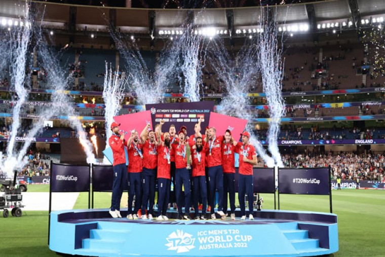 ఇంగ్లండ్ జట్టు టీ20 ప్రపంచకప్ను కైవసం చేసుకుంది. ఈరోజు మెల్బోర్న్లో జరిగిన ఫైనల్లో ఇంగ్లండ్ 5 వికెట్ల తేడాతో పాకిస్థాన్ను ఓడించింది.టాస్ గెలిచిన ఇంగ్లండ్ ముందుగా బౌలింగ్ ఎంచుకుంది. దీంతో పాక్ నిర్ణీత 20 ఓవర్లలో 8 వికెట్లకు 137 పరుగులు చేసింది. 138 పరుగుల లక్ష్యాన్ని ఇంగ్లండ్ జట్టు 19 ఓవర్లలో 5 వికెట్లు కోల్పోయి ఛేదించింది.
