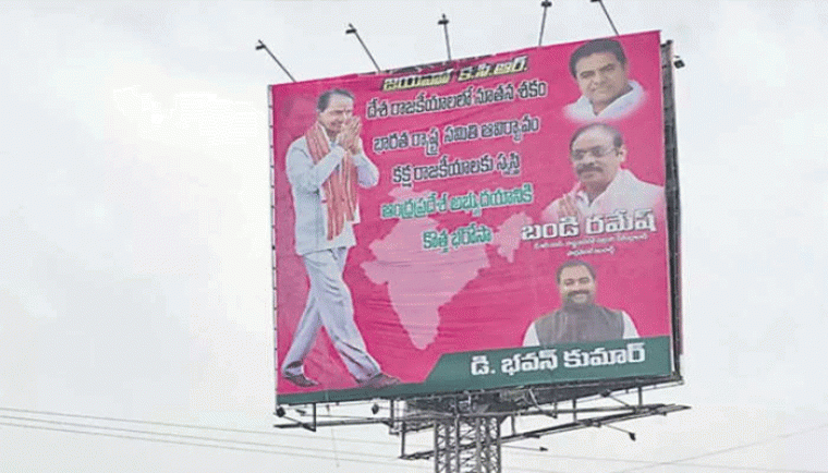 ఇక ఆంధ్రప్రదేశ్ విషయానికొస్తే.. అక్కడ కూడా బీఆర్ఎస్ పార్టీని విస్తరించాలని కేసీఆర్ ప్లాన్ చేస్తున్నట్లు సమాచారం. అ వార్తలను నిజం చేస్తూ.. తాజాగా విజయవాడలో కొందరు బీఆర్ఎస్ ఆవిర్భావాన్ని స్వాగతిస్తూ ఫ్లెక్సీలు ఏర్పాటు చేశారు. దీంతో ఏపీలోనూ కేసీఆర్ మార్క్ పాలిటిక్స్ నడపనున్నారని జోరుగా ప్రచారం జరుగుతోంది. వచ్చే ఎన్నికల్లో ఏపీలో బీఆర్ఎస్ పోటీ చేయనున్నట్లు వార్తలు వినిపిస్తున్నాయి. "జయహో కేసీఆర్.. దేశ రాజకీయాలలో నూతన శకం. భారత రాష్ట్ర సమితి ఆవిర్భావం. కక్ష రాజకీయాలకు స్వస్తి. ఆంధ్రప్రదేశ్ అభ్యుదయానికి కొత్త భరోసా." అంటూ బండి రమేశ్, డి భవానీ కుమార్ పేరుతో ఎంజీ రోడ్డులో ఫ్లెక్సీలు ఏర్పాటు చేశారు. దీంతో త్వరలోనే ఏపీకి చెందిన పలువురు బీఆర్ఎస్ పార్టీలో చేరునున్నట్లు వార్తలు వినిపిస్తున్నాయి. కాగా.. విజయవాడలో ఆంధ్రప్రదేశ్ బీఆర్ఎస్ రాష్ట్ర కార్యాలయం ఏర్పాటుకు సన్నాహాలు జరుగుతున్నట్లు తెలిసింది. జక్కంపూడి ఇన్నర్ రింగ్ రోడ్డు హైవేపై 800 గజాల్లో బీఆర్ఎస్ పార్టీ రాష్ట్ర కార్యాలయం ఏర్పాటుకు నేతలు నిర్ణయించినట్లు తెలుస్తోంది.