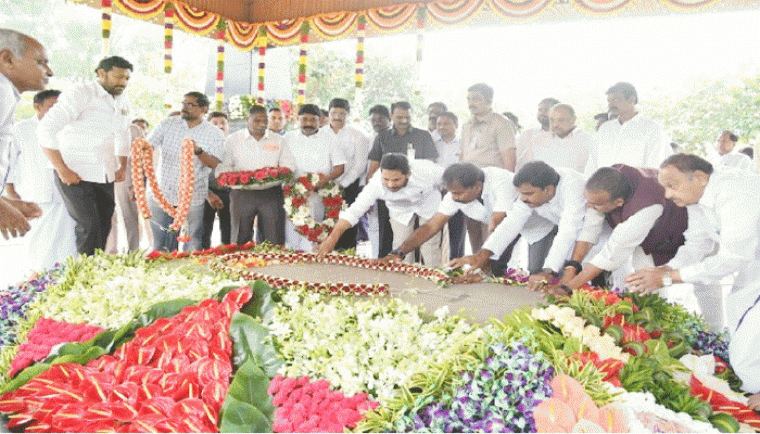 దివంగత సీఎం వై.ఎస్.రాజశేఖరరెడ్డికి ఆయన తనయుడు...ఏపీ ముఖ్యమంత్రి వై.ఎస్.జగన్మోహన్ రెడ్డి నివాళ్లుర్పించారు. ఇదిలావుంటే