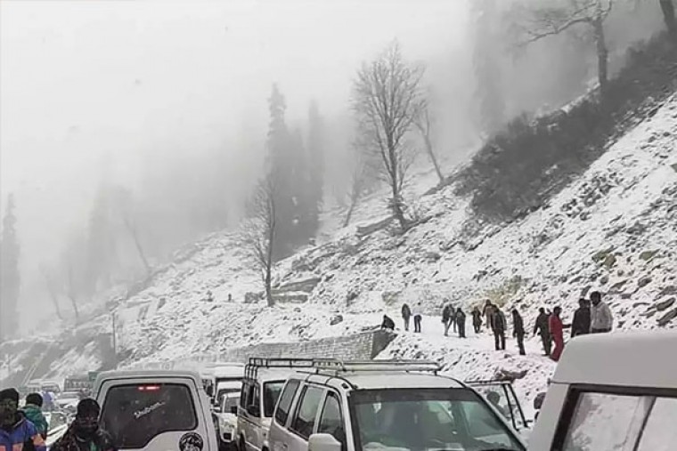 హిమాచల్ ప్రదేశ్లోని రోహతంగ్ అటల్ టన్నెల్ వద్ద మంచు కురుస్తున్న కారణంగా వందలాది మంది పర్యాటకులు చిక్కుకుపోయారు. భారీ మంచు కారణంగా మనాలి-లేహ్ రహదారిపై గురువారం నుంచి 400కు పైగా వాహనాలు నిలిచిపోయాయి. రోడ్డుపై పెద్ద ఎత్తున మంచు పేరుకుపోయింది. మంచు కారణంగా ట్రాఫిక్కు తీవ్ర అంతరాయం ఏర్పడడంతో వాహనాలు ఎక్కడికక్కడే నిలిచిపోయాయి. దీంతో గురువారం రాత్రి నుంచి పర్యాటకులు తీవ్ర ఇబ్బందులు పడ్డారు.హిమాచల్ ప్రదేశ్ పోలీసులు ప్రత్యేక ఆపరేషన్ నిర్వహించి పర్యాటకులను రక్షించారు. హిమపాతం కారణంగా వాహనాల్లో చిక్కుకుపోయిన పర్యాటకులకు పోలీసులు ఆహార పదార్థాలను అందించారు.