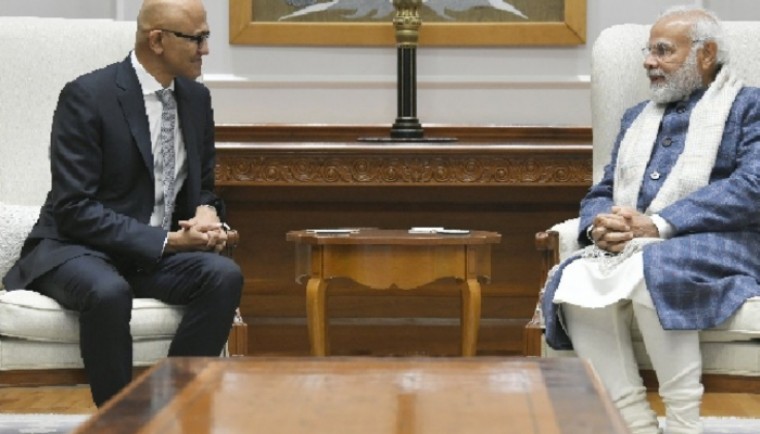 భారత్ లో నాలుగు రోజుల పర్యటనకు విచ్చేసిన మైక్రోసాఫ్ట్ చైర్మన్, సీఈవో సత్య నాదెళ్ల నేడు ప్రధాని నరేంద్ర మోదీని కలిశారు. డిజిటల్ ఇండియా లక్ష్యాన్ని సాధించేందుకు భారత కేంద్ర ప్రభుత్వం చేస్తున్న కృషిని ఆయన కొనియాడారు. వీరిద్దరి మధ్య భేటీలో డిజిటలైజేషన్ తో కూడిన సుస్థిర సమ్మిళిత ఆర్థికాభివృద్ధి, తదితర అంశాలు చర్చకు వచ్చాయి.