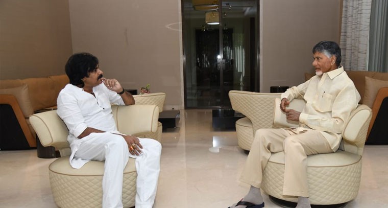 జనసేన అధినేత పవన్ కళ్యాణ్ ఆదివారం టీడీపీ అధినేత చంద్రబాబుతో భేటీ అయ్యారు. అనంతరం మీడియాతో మాట్లాడుతూ 'కుప్పంలో జరిగిన ఘటనపై చంద్రబాబును కలిశాను. ఏపీలో వైసీపీ అరాచక పాలన జరుగుతోంది. వైసీపీకి బాధ్యతలు గుర్తుచేయాలి. బ్రిటీష్ కాలంనాటి జీవో తెచ్చారు. వీటికి బ్రేక్ పడాలి. వైజాగ్ లో నన్ను అడ్డుకున్నారు. జీవోకు ముందు పరిణామాలు ముందుగా వైజాగ్ లోనే చూశాం' అని అన్నారు.
