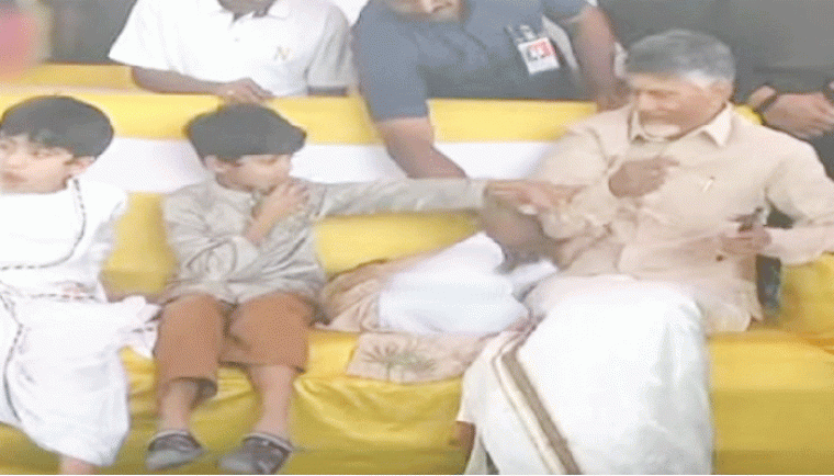 ఆర్యవీర్ తన కాళ్లను చంద్రబాబు ఒళ్లో వేసి పెంకిపిల్లాడిలా మారాం చేయడం, ఆ చిన్నారి కాళ్లను తన చేతితో నొక్కిపెట్టి నీకిదే పనిష్మెంట్ అంటూ చంద్రబాబు కూడా చిన్న పిల్లాడిలా ఆటలు ఆడడం ఈ వీడియోలో చూడొచ్చు.