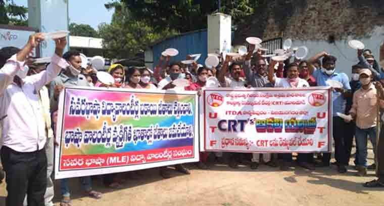 తమ సమస్యలు పరిష్కరించాలని సవర భాషా వాలంటీర్లు డిమాండ్ చేశారు. ఈ మేరకు సోమవారం విజయనగరం జిల్లా, పార్వతీపురం కలెక్టరేట్ ఎదుట ధర్నా చేశారు. కొన్ని నెలలుగా నిరసన కార్యక్రమాలు చేపడుతున్నా సర్కారు పట్టించుకోకపోవడం తగదన్నారు. ఉపాధి కోల్పోయిన తమను ప్రభుత్వం అన్ని విధాలుగా ఆదుకోవాలని నినాదాలు చేశారు. తక్షణమే తమను విధుల్లోకి తీసుకోవాలని కోరారు. అదే సమయంలో అక్కడకు చేరుకున్న ఎమ్మెల్యే జోగారావుకు సమస్యను తెలియజేశారు. అనంతరం కలెక్టరేట్లో అధికారులకు వినతిపత్రం అందించారు. ఈ నిరసనలో సీఐటీయూ నాయకుడు సన్యాసి తదితరులు ఉన్నారు.
