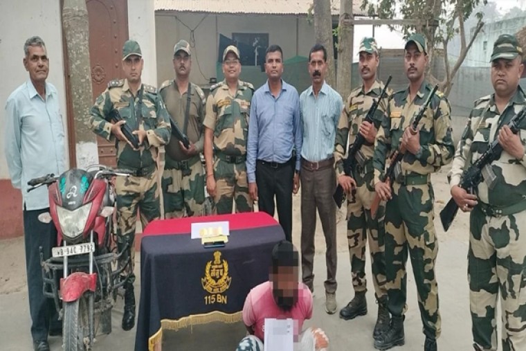 ఇండో-బంగ్లాదేశ్ సరిహద్దులో రూ.33.50 లక్షల విలువైన బంగారం స్వాధీనం సరిహద్దు భద్రతా దళం సిబ్బంది మార్చి 16న పశ్చిమ బెంగాల్లోని ముర్షిదాబాద్లోని భారత్-బంగ్లాదేశ్ సరిహద్దు సమీపంలో ఒక వ్యక్తిని అరెస్టు చేశారు మరియు అతని వద్ద నుండి సుమారు రూ. 33.50 లక్షల విలువైన ఐదు బంగారు బిస్కెట్లను స్వాధీనం చేసుకున్నారు. నిందితుడిని ఆలం గిర్ షేక్గా గుర్తించారు. బంగ్లాదేశ్ నుంచి భారత్కు బంగారు బిస్కెట్లను స్మగ్లింగ్ చేసేందుకు షేక్ ప్రయత్నిస్తున్నాడని బీఎస్ఎఫ్ తెలిపింది. విచారణలో బంగ్లాదేశ్ స్మగ్లర్ నుంచి బంగారు బిస్కెట్లు అందుకున్నట్లు నిందితుడు వెల్లడించాడు.
