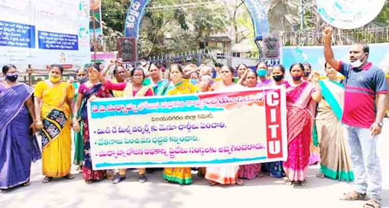 ఈ నెల 20న సోమవారం రాష్ట్ర వ్యాప్తంగా నిర్వహించే చలో విజయవాడ కార్యక్రమాన్ని విజయవంతం చేయాలని మధ్యాహ్న భోజన కార్మికులు, నెల్లూరు జిల్లా సీఐటీయూ నాయకుడు మల్లికార్జున పిలుపునిచ్చారు. ఈ మేరకు శనివారం బుచ్చిలోని విద్యావనరుల కేంద్రం వద్ద నిరసన వ్యక్తం చేసి ఎంఈవోకు వినతిపత్రం సమర్పించారు. పాఠశాలల్లో విద్యార్థులకు మధ్యాహ్న భోజనం వండి పెడుతున్న కార్మికుల న్యాయమైన కోర్కెలను పరిష్కరించాలని ఆయన డిమాండ్ చేశారు. కార్యక్రమంలో మధ్యాహ్న భోజన కార్మికులు పాల్గొన్నారు.