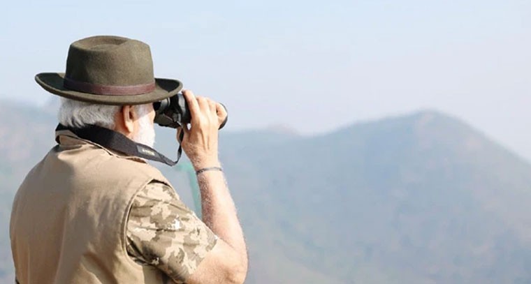 ప్రధాని నరేంద్ర మోదీ నేడు కర్ణాటకలోని బండీపుర టైగర్ రిజర్వును సందర్శించారు. ఈ విషయాన్ని ఆయన వెల్లడిస్తూ టైగర్ రిజర్వుకు చెందిన పలు ఫొటోలను ట్విటర్లో పంచుకొన్నారు.''రమణీయమైన బండీపుర టైగర్ రిజర్వులో నేటి ఉదయం గడిపాను. భారత దేశ ప్రకృతి సౌందర్యాన్ని, వన్యప్రాణుల వైవిధ్యాన్ని ఆస్వాదించాను'' అని పేర్కొన్నారు. ఈ టైగర్ రిజర్వులో దాదాపు 20 కిలోమీటర్లు ప్రయాణించి అటవీ అందాలను ప్రధాని ఆస్వాదించారు. ఖాకీ ప్యాంట్, కామోఫ్లాజ్ టి-షర్ట్, స్లీవ్లెస్ జాకెట్ ధరించిన మోదీ ఈ కార్యక్రమంలో ఉత్సాహంగా పాల్గొన్నారు. ఈ టైగర్ రిజర్వ్ను సందర్శించిన తొలి ప్రధానిగా మోదీ నిలిచారు.