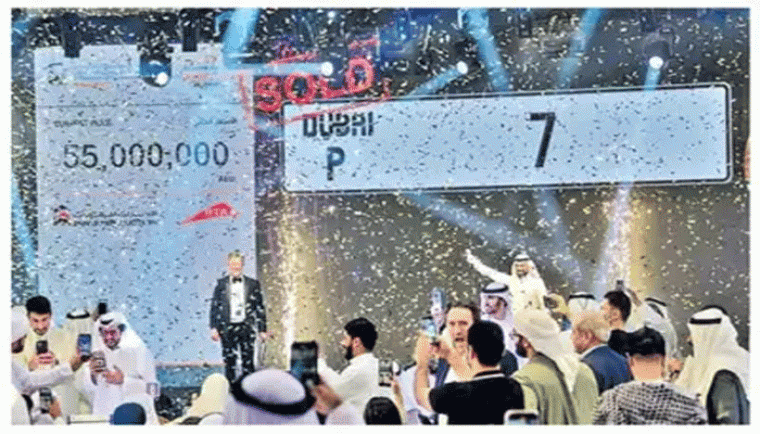 ఆ తర్వాత 30 మిలియన్ దిర్హామ్లకు.. అనూహ్యంగా 55 మిలియన్ దిర్హామ్లకు చేరుకుంది. ‘పీ7’తో పాటు మిగతా నంబర్లు, మొబైల్ ఫ్యాన్సీ నంబర్లకూ వేలం నిర్వహించారు. ఈ వేలంతో మొత్తం 100 మిలియన్ దిర్హామ్లు (రూ.223 కోట్లు) సమకూరినట్లు అధికారులు వెల్లడించారు. ఇప్పటి వరకూ ‘మోస్ట్ నోబుల్ నెంబర్స్’ వేలంలో అత్యధికంగా 2008లో అబుధాబిలో ‘నంబరు 1’ను ఓ వ్యాపారవేత్త 52.2 మిలియన్ దిర్హామ్లకు కొనుగోలు చేశాడు. ఇప్పుడు ఆ ధరను పీ7 అధిగమించి కొత్త రికార్డు నెలకొల్పింది.