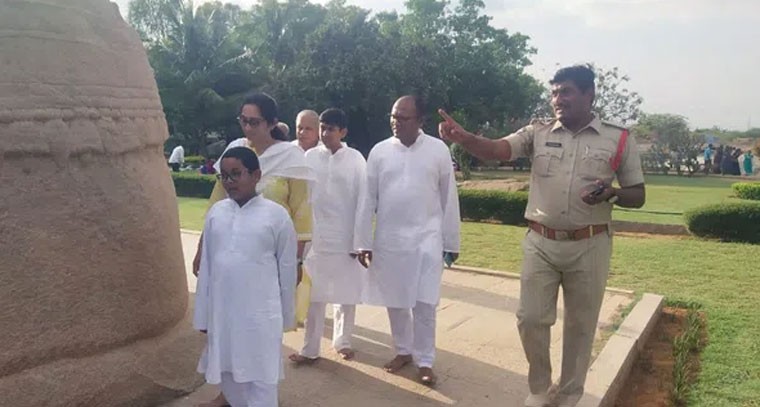 శ్రీ సత్య సాయి జిల్లా హిందూపురం నియోజకవర్గం లోని ప్రపంచ ప్రసిద్ధిగాంచిన లేపాక్షి వీరభద్రస్వామి దేవాలయాన్ని ఇండియన్ రెవెన్యూ సర్వీసు అధికారి నరసింహరెడ్డి దంపతులు సోమవారం సాయంత్రం సందర్శించారు. వారికి ఆలయ అర్చకులు స్వాగతం పలికారు. ఈ సందర్భంగా ఆలయంలోని దుర్గాదేవి. వీర భద్రస్వామివార్లకు పూజలు నిర్వహించారు. అనంతరం ఆలయంలోని శిల్పాలు, చిత్రలే ఖనాలను తిలకించి హర్షం వ్యక్తం చేశారు. వారి వెంట ఎస్ఐ మునీర్ అహమ్మద్ తో పాటు పోలీస్ సిబ్బంది, రెవెన్యూ సిబ్బంది ఉన్నారు.