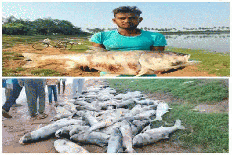 కాకినాడ జిల్లా పెద్దాపురం దగ్గర విషాధకర ఘటన చోటు చేసుకొంది. సుమారు 174 ఎకరాల విస్తీర్ణం కలిగిన చెరువులో మూడు టన్నుల వరకు చేపలు అనుమానాస్పద స్థితిలో మృతి చెందిన ఘటన కాకినాడ జిల్లా పెద్దాపురం మండలం రాయభూపాలపట్నం గ్రామంలో చోటు చేసుకుంది. స్థానికుల కథనం ప్రకారం.. సుమారు 500 ఎకరాల ఆయకట్టుకు సాగు నీరందించే రాఘవమ్మ చెరువులో మత్స్యకార సంఘం 174 ఎకరాల మేర చేపల సాగు చేపట్టింది. సోమవారం సుమారు 50 టన్నుల చేపలను పట్టుకునేందుకు మత్స్యకారులు సిద్ధమై చెరువు వద్దకు వెళ్లారు. అప్పటికే కొన్ని వందల చేపలు చనిపోయి ఒడ్డుకు కొట్టుకొచ్చాయి. దీంతో మత్స్యకారులు వెంటనే సంఘం నేతలు, అధికారులకు సమాచారం ఇచ్చారు.