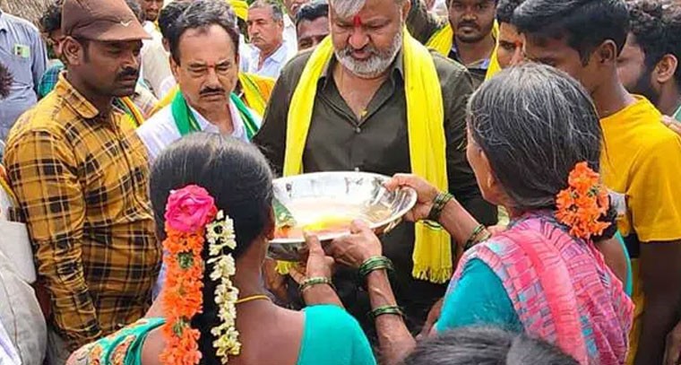 పుంగనూరు నియోజకవర్గం చౌడేపల్లి మండలంలో ఇంటింటికి మీ చల్లా కార్యక్రమాన్ని నిర్వహిస్తున్న తెలుగుదేశం పార్టీ ఎమ్మెల్యే అభ్యర్థి చల్లా రామచంద్రారెడ్డికి వెంగల పల్లి పంచాయతీలో మహిళలు మంగళ హారతులతో ఘన స్వాగతం పలికారు. ఈ సందర్భంగా ఆయన శుక్రవారం మాట్లాడుతూ ఏ సమయంలోనైనా ప్రజలకు అందుబాటులో ఉండి సేవలందిస్తానని తెలియజేశారు. కార్యక్రమంలో టిడిపి నాయకులు , కార్యకర్తలు, అభిమానులు పెద్ద సంఖ్యలో పాల్గొన్నారు.