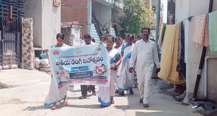 ధర్మవరం పట్టణంలోని 21 వ వార్డు సిద్దయ్యగుట్టలో మంగళవారం అంతర్జాతీయ డెంగ్యూ దినోత్సవాన్ని నిర్వహించారు. ఈ కార్యక్రమానికి ముఖ్యఅతిథిగా వార్డు కౌన్సిలర్ కత్తే ఆదిలక్ష్మి, వార్డ్ వైసిపి ఇన్చార్జ్ కత్తే పెద్దన్న హాజరయ్యారు. ఈ సందర్భంగా కత్తే పెద్దన్న మాట్లాడుతూ. ప్రజలు పరిసరాలు పరిశుభ్రంగా ఉంచుకోవాలని, డెంగ్యూ నివారణకు సహకరించాలని కోరారు. అనంతరం పట్టణంలో డెంగ్యూ వ్యాధి పై అవగాహన కల్పిస్తూ ర్యాలీ నిర్వహించారు. ఈ కార్యక్రమంలో వైద్య అధికారులు జయరాం నాయక్, శ్రావణి, శ్వేత చంద్రిక పాల్గొన్నారు.
