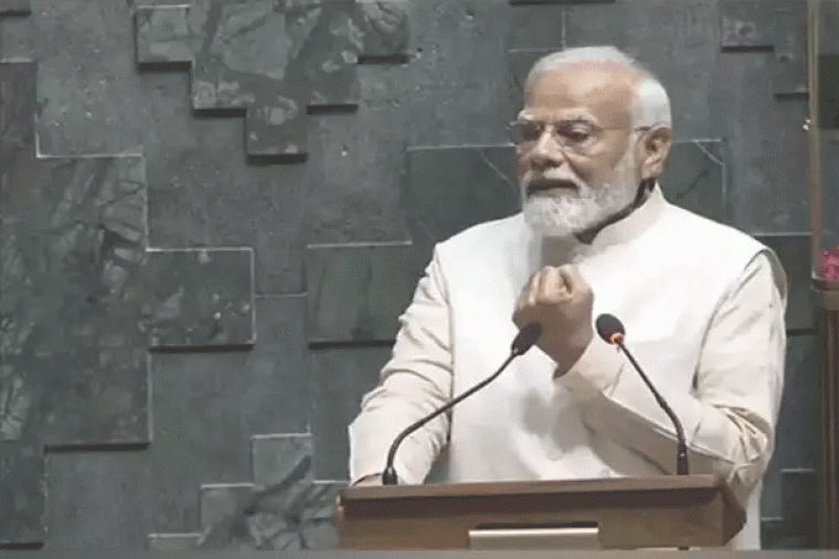 దేశ వికాస యాత్రలో ఎప్పటికీ నిలిచిపోయే కొన్ని గడియలు వస్తాయని, అమృతోత్సవ వేళ చరిత్రాత్మక ఘటనలో ప్రజలు భాగస్వాములయ్యారని ప్రధాని వ్యాఖ్యానించారు. ఇది కేవలం భవనం కాదని, 140 కోట్ల ప్రజల ఆకాంక్షల, కలలకు ప్రతీక అని చెప్పారు. ప్రపంచానికి భారత్ దృఢ సంకల్ప సందేశం ఈ కొత్తభవనం ఇస్తుందని వ్యాఖ్యానించారు. స్వాతంత్ర్య సమరయోధుల కలల సాకార మాధ్యమంగా, ఆత్మనిర్భర భారత్కు సాక్షిగా ఇది నిలుస్తుందని మోదీ పేర్కొన్నారు. నవ భారత్ కొత్త మార్గాలు నిర్దేశించుకుని.. కొత్త ఆలోచనలు, సంకల్పంతో భారత్ ప్రగతి పథాన పయనిస్తోందని చెప్పారు. ప్రపంచం మొత్తం మన దేశ సంకల్పం, అభివృద్ధిని గమనిస్తోందని ప్రధాని వివరించారు.