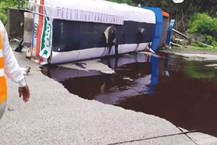 మంగళవారం మధ్యాహ్నం 12 గంటలకు ముంబై-పుణే ఎక్స్ప్రెస్ వే పై వెళ్తున్న ఆయిల్ ట్యాంకర్.. లోనావాలా వద్ద ప్రమాదానికి గురైంది. ఫ్లై ఓవర్ బ్రిడ్జ్పై ఉన్న ఓ బండరాయిని ఢీ కొని.. బోల్తా పడింది. ఈ ఘటనలో నలుగురు వ్యక్తులు దుర్మరణం చెందారు. మరి కొంతమందికి గాయాలయ్యాయి. ట్యాంకర్ బోల్తా పడిన సమాచారం అందుకున్న అగ్నిమాపక సిబ్బంది మంటలు ఆర్పివేసే ప్రయత్నాలు చేపట్టారు. ఆయిల్ ట్యాంకర్ బోల్తా పడటంతో ముంబై - పుణే ఎక్స్ప్రెస్ వే పై ట్రాఫిక్ స్తంభించింది. ముంబై నుంచి పుణేకు.. పుణే నుంచి ముంబైకి వెళ్లే వాహనాలు.. జాతీయ రహదారిపై ఎక్కడికక్కడ నిలిచిపోయాయి. దీంతో ఆ ప్రాంతంలో పోలీసులు సహాయక చర్యలు చేపట్టారు. వాహనాలను దారి మళ్లించి ట్రాఫిక్ ను సరి చేస్తున్నారు.