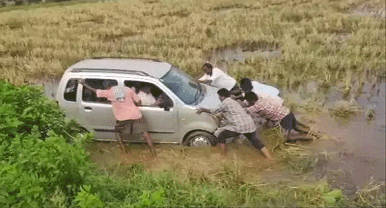 డాక్టర్ బీఆర్ అంబేద్కర్ కోనసీమ జిల్లా ముమ్మిడివరం మండలం గాడిలంక దగ్గర కారు పొలాల్లోకి దూసుకెళ్లింది. యానాం నుంచి ముగ్గురు కారులో మంగళవారం మధ్యాహ్నం ముమ్మిడివరం మండలం కొత్తలంకలోని వలీబాబా దర్గాకు వెళ్తున్నారు. ఈ క్రమంలో గాడిలంక దగ్గరకు రాగానే ఓ పాము కారు స్టీరింగ్పైకి వచ్చింది.. డ్రైవర్ భయంతో ఉలిక్కిపడ్డాడు.. ఆ భయంతో స్టీరింగ్ వదిలేశాడు. దీంతో కారు అదుపుతప్పి పక్కనేఉన్న పంట పొలాల్లోకి దూసుకెళ్లింది.