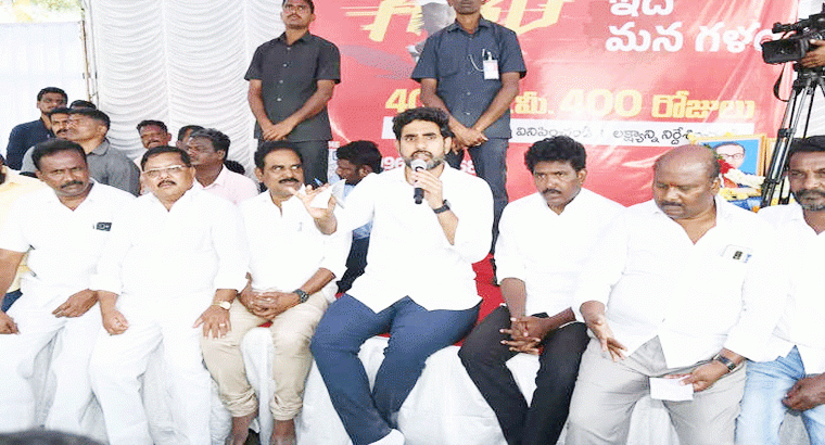 యువగళం మీ గళాన్ని వినిపించడానికి ఒక వేదిక అని నారా లోకేష్ అన్నారు. టీడీపీ అధికారంలోకి రాగానే ఉద్యోగాలు లేని యువతకు ప్రతి నెలా రూ. 3 వేలు నిరుద్యోగ భృతి అందిస్తామని చెప్పారు. ప్రతి ఏడాది నోటిఫికేషన్ విడుదల చేస్తామని.. పెండింగ్ పోస్టులన్నీ భర్తీ చేస్తామని హామీ ఇచ్చారు. సక్సెస్కి షార్ట్ కట్ లేదని.. కష్టపడితేనే జీవితంలో విజయం సాధిస్తారని యువతకు మెసేజ్ ఇచ్చారు. ఇక, ముఖ్యమంత్రి జగన్మోహన్ రెడ్డి పాలనలో రైతులు అప్పులపాలై ఆత్మహత్యలు చేసుకునే పరిస్థితి వచ్చిందని లోకేష్ అన్నారు. కల్తీ విత్తనాలు, ఎరువులు, పురుగుల మందులు వల్ల రైతులు తీవ్రంగా నష్టపోతున్నారని పేర్కొన్నారు. జగన్ విద్యా వ్యవస్థను కూడా నాశనం చేస్తున్నారని.. రాష్ట్రంలో పాఠశాలలను మూసేస్తున్నారని చెప్పారు. టీచర్ల పోస్టులు కూడా భర్తీ చేయడం లేదన్నారు. టీడీపీ అధికారంలోకి వచ్చిన తర్వాత కేజీ నుంచి పీజీ వరకు విద్యను ప్రక్షాళన చేస్తామని చెప్పారు. చదువు పూర్తయిన వెంటనే ఉద్యోగాలు వచ్చేలా విద్యార్థులను సిద్ధం చేస్తామని లోకేష్ వెల్లడించారు.