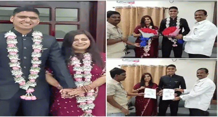 ఏపీ కేడర్కు చెందిన యువ ఐఏఎస్ అధికారిణి, ట్రైనీ ఐపీఎస్లు వివాహ బంధంతో ఒక్కటయ్యారు. కృష్ణా జిల్లాలో ఈ జంట వివాహం నిరాడంబరంగా జరిగింది. కృష్ణా జిల్లా జాయింట్ కలెక్టర్ అపరాజిత సింగ్, ట్రైనీ ఐపీఎస్ దేవేంద్ర కుమార్లు.. మచిలీపట్నం కలెక్టరేట్లోని ఛాంబర్లో జిల్లా రిజిస్ట్రార్ సమక్షంలో పెళ్లి చేసుకున్నారు. వీరిద్దరు దండలు మార్చుకుని రిజిస్టర్ మ్యారేజ్తో ఒక్కటయ్యారు. కొత్త జంటకు కలెక్టర్ రాజాబాబు, కలెక్టరేట్ సిబ్బంది అభినందనలు తెలిపారు.