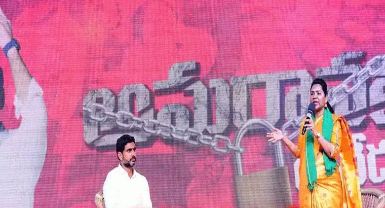 టీడీపీ జాతీయ ప్రధాన కార్యదర్శి నారా లోకేష్ యువగళం పాదయాత్ర గుంటూరు జిల్లా తాడికొండ నియోజకవర్గంలో జరుగుతోంది. యువగళం 183వ రోజు పాదయాత్ర సందర్భంగా ‘అమరావతి ఆవేదన’ పేరుతో రావెలలో అమరావతి రైతులతో ముఖాముఖి నిర్వహించారు. ఈ కార్యక్రమానికి వైఎస్సార్సీపీ రెబల్ ఎమ్మెల్యే ఉండవల్లి శ్రీదేవి వ్యాఖ్యాతగా వ్యవహరించారు. ఈ కార్యక్రమంలో శ్రీదేవి చేసిన వ్యాఖ్యలు ఆసక్తికరంగా మారాయి. తన వెనుక చంద్రబాబు, లోకేష్ ఉన్నారని.. ఎవరూ ఏమీ పీకలేరంటూ ఘాటు వ్యాఖ్యలు చేశారు.