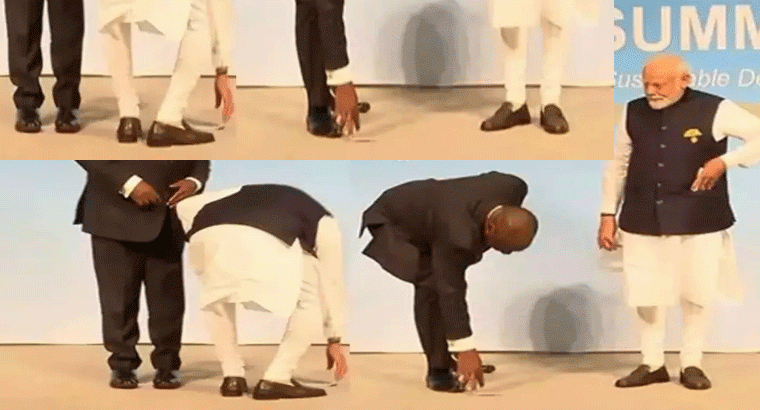 అయితే ఆ స్టేజీ మీద ఉన్న జాతీయ జెండాను చూసిన ప్రధాని మోదీ.. స్జేజీపైన కాలు పెట్టకుండానే కిందికి వంగి.. ఆ త్రివర్ణ పతాకాన్ని తీసుకున్నారు. అనంతరం దాన్ని తీసుకుని తన కోటు జేబులో పెట్టుకున్నారు. అయితే ఫోటో సెషన్ సమయంలో ఆయా దేశాలకు సంబంధించిన నేతలు నిలబడేందుకు వారి స్థానాల్లో ఆయా దేశాల జాతీయ జెండాలను ఉంచుతారు. ఈ క్రమంలోనే ప్రధాని మోదీ నిలబడాల్సిన ప్రాంతంలో భారతీయ జెండాను ఉంచారు. అది చూసిన ప్రధాని మోదీ.. జెండా ఉన్న స్టేజీపై కాలు పెట్టకుండా దాన్ని తీసుకుని జేబులో పెట్టుకున్నారు.