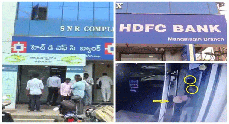 మంగళగిరి హెచ్డీఎఫ్సీ బ్యాంకులో చోరీ యత్నం జరిగింది. రాత్రి వేళ షట్టర్ తాళాలు పగలగొట్టిన ముగ్గురు దొంగలు బ్యాంక్ లోపలోకి ప్రవేశించే ప్రయత్నం చేశారు. కానీ అదే సమయంలో అటుగా పోలీసులు పెట్రోలింగ్కు రావడంతో.. వాహనం సైరన్ వినగానే అక్కడి నుంచి జారుకున్నారు. బ్యాంకులో దొంగతనానికి యత్నించిన వైనం సీసీటీవీ కెమెరాలో రికార్డయ్యింది. సోమవారం తెల్లవారుజామున 3 గంటల 40 నిమిషాల సమయంలో ముగ్గురు దొంగలు బ్యాంకు షట్టర్ తాళం పగలగొట్టి చోరీకి యత్నించారని పోలీసులు తెలిపారు. బ్యాంకు అధికారుల ఫిర్యాదు మేరకు రంగంలోకి దిగిన పోలీసులు కేసు నమోదు చేసి దర్యాప్తు చేపట్టారు.