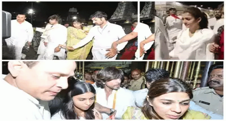 జవాన్ చిత్రం రిలీజ్కు ముందు బాలీవుడ్ బాద్షా షారుక్ ఖాన్, హీరోయిన్ నయనతార తిరుమల శ్రీవారిని దర్శించుకున్నారు. మంగళవారం ఉదయం సుప్రభాత సేవలో షారుక్, నయనతార పాల్గొన్నారు. షారుక్తోపాటు ఆయన కుమార్తె సుహానా ఖాన్, మేనేజర్ పూజా డడ్లానీ.. నయనతార-విఘ్నేష్ శివన్ దంపతులు సంప్రదాయ వస్త్రధారణలో స్వామి వారిని దర్శించుకున్నారు. షారుక్, నయనతారకు స్వాగతం పలికిన ఆలయ అధికారులు.. దగ్గరుండి మరీ దర్శన ఏర్పాట్లు చేశారు. దర్శనం అనంతరం రంగనాయక మండపంలో వేద పండితులు వేద ఆశీర్వచనం చేశారు. అనంతరం అధికారులు వారిని స్వామివారి శేష వస్త్రంతో సత్కరించి తీర్థ ప్రసాదాలను అందజేశారు.