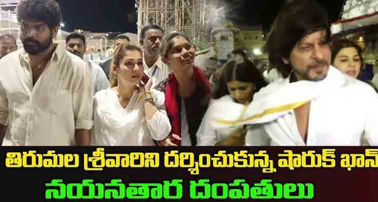 ఈ నెల 7న ‘జవాన్’ చిత్రం విడుదల కానున్న నేపథ్యంలో బాలీవుడ్ హీరో షారుఖ్ ఖాన్, నటి నయనతార, దర్శకుడు విఘ్నేశ్ శివన్ దంపతులు మంగళవారం తిరుమల శ్రీవారిని దర్శించుకున్నారు. అక్కడ షారుఖ్ ఖాన్ డిక్లరేషన్పై సంతకం చేసి ఆలయంలోకి వెళ్లారు. ధ్వజస్తంభానికి మొక్కుకున్న అనంతరం సుప్రభాత సేవలో పాల్గొని గర్భాలయంలోని మూలమూర్తిని దర్శించుకున్నారు.