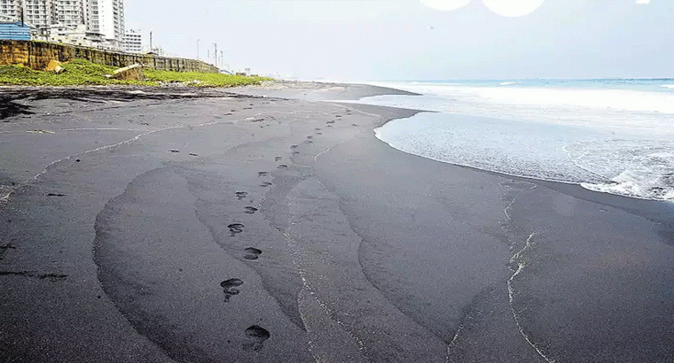 విశాఖ ఆర్కే బీచ్లో కోస్టల్ బ్యాటరీ నుంచి నోవాటెల్ హోటల్ ఎదురుగా ఉన్న చిల్డ్రన్ పార్కు వరకు సముద్ర తీరంలో ఇసుక తిన్నెలు నల్లగా మారాయి. ఇలా ఇసుక రంగు మారడం చర్చనీయాంశమైంది. కలుషితమైన వ్యర్థ జలాలు సముద్రంలో కలవడమే అందుకు కారణమని భావిస్తున్నారు. అయితే అది కారణం కాదని నిపుణులు చెబుతున్నారు.. ఇసుకలో ఉండే లైట్, హెవీ మినరల్స్ విడిపోవడం వల్లే తీరం నల్లగా మారింది అంటున్నారు.