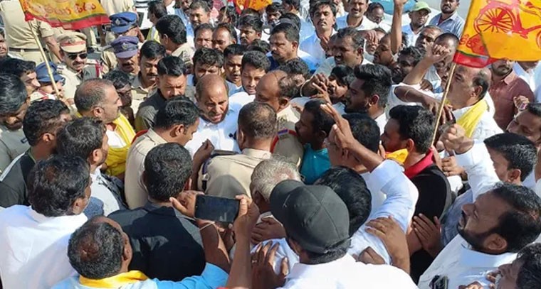 కడప ఇర్కాన్ సర్కిల్ వద్ద చంద్రబాబు నాయుడు అక్రమ అరెస్టును నిరసిస్తూ టీడీపీ రాష్ట్ర ఉపాధ్యక్షుడు పుత్త నర్సింహారెడ్డి టీడీపీ నాయకులతో కలసి నిరసన కార్యక్రమాలు తెలిపారు. శనివారం దాదాపు గంట సేపు ఉద్రిక్త వాతవరణం నెలకొన్నది. భారీగా పోలీసులు మోహరించారు. సీఎం జగన్మోహన్ రెడ్డి దిష్టిబొమ్మ దగ్ధం చేశారు. టీడీపీ నాయకులు పోలీసుల మధ్య తోపులాటతో ఉద్రిక్తత వాతవరణం అనంతరం నరసింహారెడ్డిని పోలీసులు అరెస్టు చేశారు.