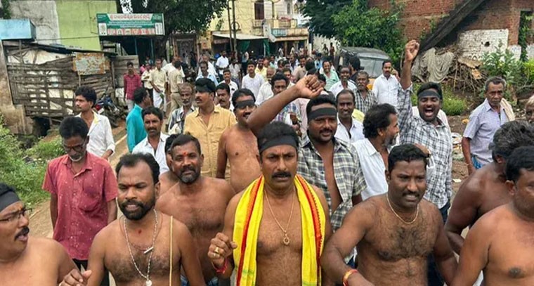 తెలుగుదేశం పార్టీ జాతీయ అధ్యక్షులు మాజీ ముఖ్యమంత్రి నారా చంద్రబాబు నాయుడు అక్రమ అరెస్ట్ కి నిరసనగా మాజీ ఎమ్మెల్యే గవిరెడ్డి రామానాయుడు మాడుగుల నియోజకవర్గం కె కోటపాడులో గాంధీ బొమ్మ విగ్రహం నుంచి జంక్షన్ వరకు వినూత్న రీతిలో అర్ద నగ్న ప్రదర్శన నిర్వహించారు. సందర్భంగా జంక్షన్లో ఆందోళన చేపట్టి ప్రభుత్వ విధానాలను దుయ్యపట్టారు. వైయస్ జగన్ ప్రభుత్వం కక్ష పూరిత చర్యలకు ఉంటుందని మండిపడ్డారు.