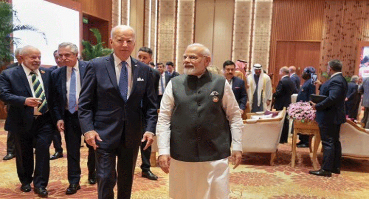 జీ20 శిఖరాగ్ర సదస్సు కోసం భారత్కు శుక్రవారం రాత్రి చేరుకున్న అమెరికా అధ్యక్షుడు జో బైడెన్.. నేరుగా ప్రధాని నరేంద్ర మోదీ నివాసానికి వెళ్లారు. అక్కడ అమెరికా అధ్యక్షుడికి ప్రధాని మోదీ ఘన స్వాగతం పలికారు. అనంతరం ఇరువురూ ద్వైపాక్షిక సమావేశంలో పాల్గొన్నారు. దాదాపు 50 నిమిషాల పాటు కొనసాగిన ఈ భేటీలో మోదీ, బైడెన్లు కీలక అంశాలపై చర్చించారు. భారత్ - అమెరికా మధ్య సంబంధాలను మరింత బలోపేతం చేసేలా వీరి మధ్య చర్చలు జరిగినట్లుగా ప్రధాని కార్యాలయం ప్రకటించింది. కృత్రిమ మేధ (ఏఐ), 5జీ, 6జీ స్పెక్ట్రమ్, ఉక్రెయిన్ రష్యా యుద్ధ సంక్షోభం, పౌర అణు రంగంలో పురోగతి, అభివృద్ధి చెందుతున్న సాంకేతికత అంశాలపై కూడా చర్చ జరిగింది. భేటీ తర్వాత ఇరు దేశాలు ఉమ్మడి ప్రకటన చేశాయి.