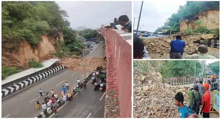 దీంతో జాతీయ రహదారి పై వాహనాల రాకపోకలు నిలిచిపోయాయి. దుర్గ గుడి అధికారులు ప్రత్యేక క్రేన్లు తెప్పించి రోడ్డుపై పడిన కొండ రాళ్లను తొలగిస్తున్నారు. సమీపంలోని సబ్వేను కూడా మూసివేశారు. విరిగిపడిన కొండచరియలను తొలగించేందుకు అధికారులు యుద్ధప్రాతిపదికన చర్యలు మొదలుపెట్టారు. దుర్గ గుడి ఈవో భ్రమరాంబ సంఘటనా స్థలానికి చేరుకుని సహాయచర్యలు పర్యవేక్షించారు. ఈ క్రమంలోనే ఆలయం ముందు నుంచి వెళ్లే కుమ్మరిపాలెం - రథం సెంటర్ మధ్య రోడ్డు తాత్కాలికంగా మూసివేశారు. కొండరాళ్లు పూర్తిగా తొలగిస్తే తప్ప ట్రాఫిక్ పునరుద్ధరణ సాధ్యపడదని పోలీసులు అంటున్నారు. వాహనాల రాకపోకలను కనకదుర్గ పైవంతెన నుంచి కొనసాగిస్తామని తెలిపారు.