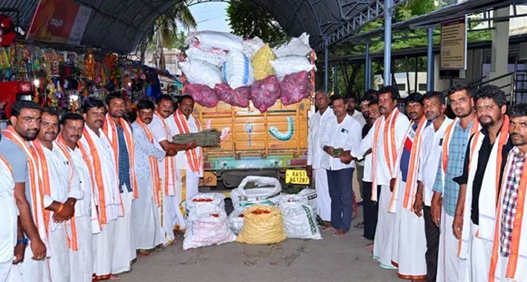 కాణిపాకం శ్రీవరసిద్ధి వినాయకస్వామి దేవస్థానం నిత్యాన్నదాన పథకానికి మూడు టన్నుల కూరగాయలను శాంతిపురం జెడ్పీటీసీ సభ్యుడు శ్రీనివాసులు, మిత్రబృందం వితరణగా అందజేశారు. బుధ వారం దాతలు ప్రత్యేక వాహనం లో కూరగాయలను ఆలయం వద్దకు తీసుకు వచ్చారు. ఆలయ ఈఓ వెంకటేశుకు వీటిని అందించారు. వారికి ఆలయ అధికారులు స్వామివారి ప్రత్యేక దర్శనం కల్పించారు. తీర్థ ప్రసాదాలు అందించారు.