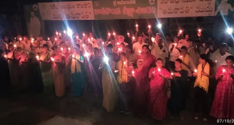 తాడికొండలో మండల కేంద్రంలో ఉన్న అమరావతి రాజధాని దీక్ష శిబిరం వద్ద శనివారం రాత్రి చంద్రబాబు నాయుడు అక్రమ అరెస్టును నిరసిస్తూ“కాంతితో క్రాంతి “అనే కార్యక్రమం నిర్వహించారు. దీనిలో భాగంగా సాయంత్రం 7 గంటల నుండి 7: 5 నిమిషాల వరకు లైట్లు అన్ని ఆపేసి కొవ్వొత్తులు వెలిగించి కార్యక్రమం నిర్వహించారు. ఈ కార్యక్రమంలో మహిళలు టిడిపి నాయకులు అధిక సంఖ్యలో పాల్గొని సంఘీభావం తెలిపారు.